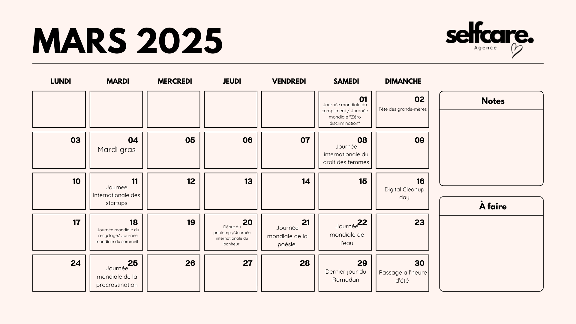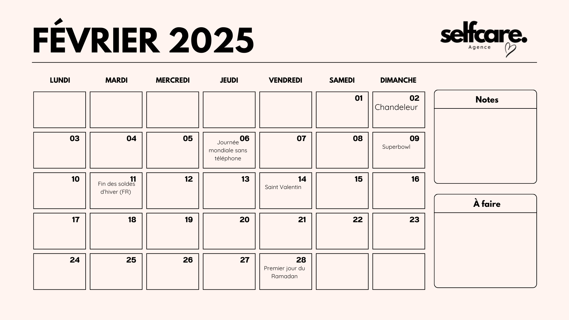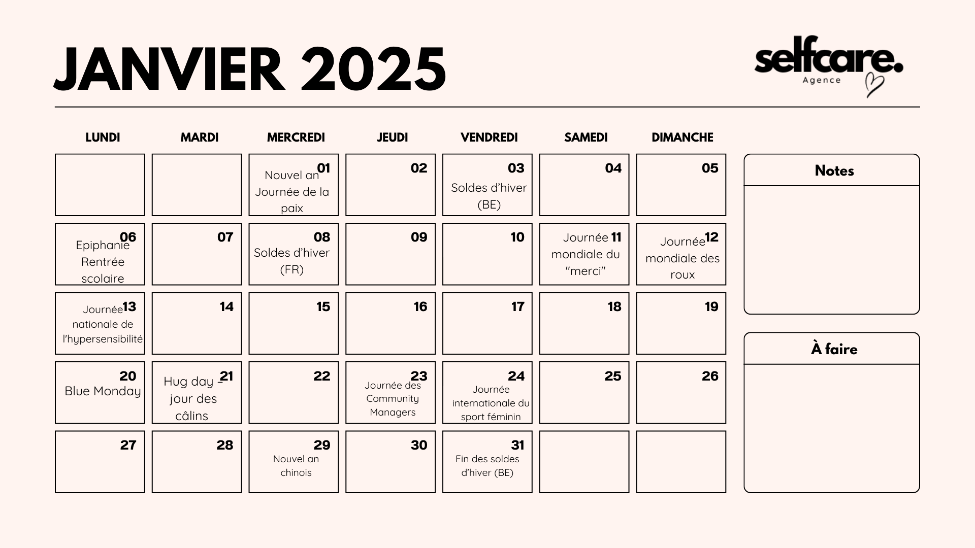 Ne manquez pas cette opportunité exclusive offerte par Selfcare.agence. Téléchargez gratuitement le « Calendrier marketing 2025 - Selfcare » et transformez votre approche marketing pour atteindre vos objectifs en toute confiance.